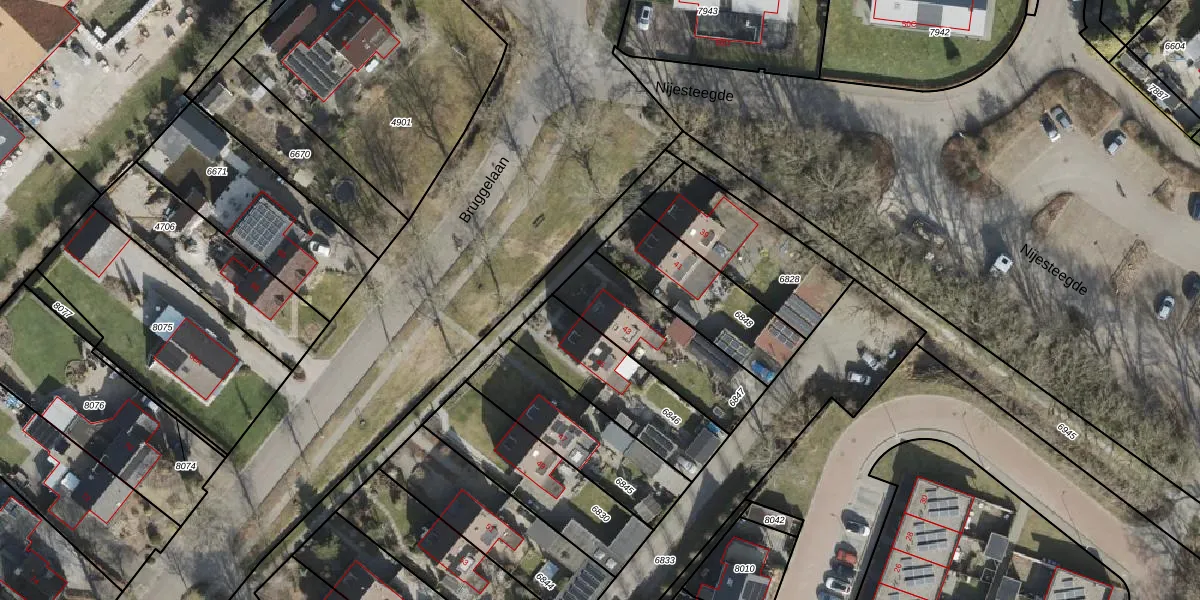 Het perceel waarop Bruggelaan 43 staat heeft een oppervlakte van 379 m². Dit is een groot perceel. De perceeloppervlakte wordt geregistreerd door het Kadaster. Gedetailleerde informatie over de maten van dit perceel kunt u vinden in het rapport Kadastrale kaart met maatvoering van Bruggelaan 43.