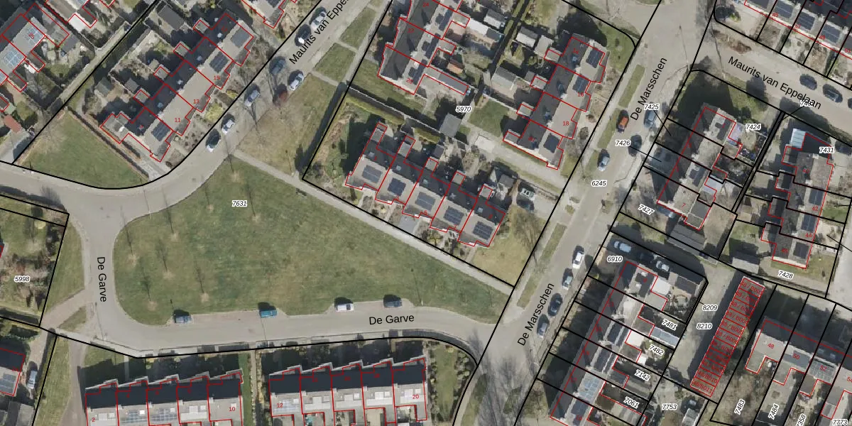Het perceel waarop De Garve 5 staat heeft een oppervlakte van 3629 m². Dit is een zeer groot perceel. De perceeloppervlakte wordt geregistreerd door het Kadaster. Gedetailleerde informatie over de maten van dit perceel kunt u vinden in het rapport Kadastrale kaart met maatvoering van De Garve 5.