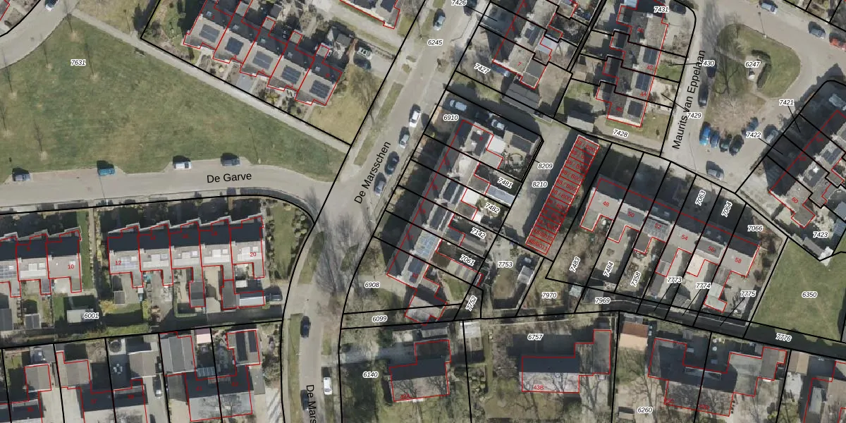Het perceel waarop De Marsschen 15 staat heeft een oppervlakte van 176 m². Dit is een middelgroot perceel. De perceeloppervlakte wordt geregistreerd door het Kadaster. Gedetailleerde informatie over de maten van dit perceel kunt u vinden in het rapport Kadastrale kaart met maatvoering van De Marsschen 15.