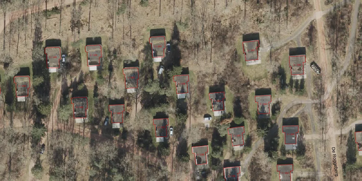 Het perceel waarop De Roggeberg 1-158 staat heeft een oppervlakte van 17,8 ha. Dit is een zeer groot perceel. De perceeloppervlakte wordt geregistreerd door het Kadaster. Gedetailleerde informatie over de maten van dit perceel kunt u vinden in het rapport Kadastrale kaart met maatvoering van De Roggeberg 1-158.