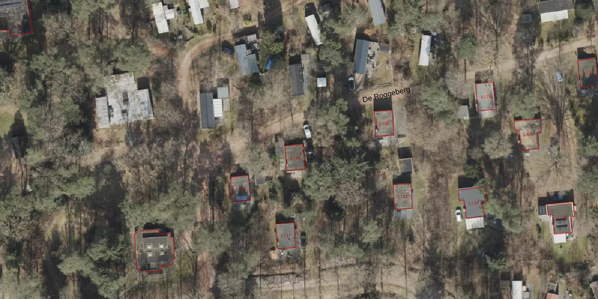 Het perceel waarop De Roggeberg 1-19 staat heeft een oppervlakte van 15,0 ha. Dit is een zeer groot perceel. De perceeloppervlakte wordt geregistreerd door het Kadaster. Gedetailleerde informatie over de maten van dit perceel kunt u vinden in het rapport Kadastrale kaart met maatvoering van De Roggeberg 1-19.