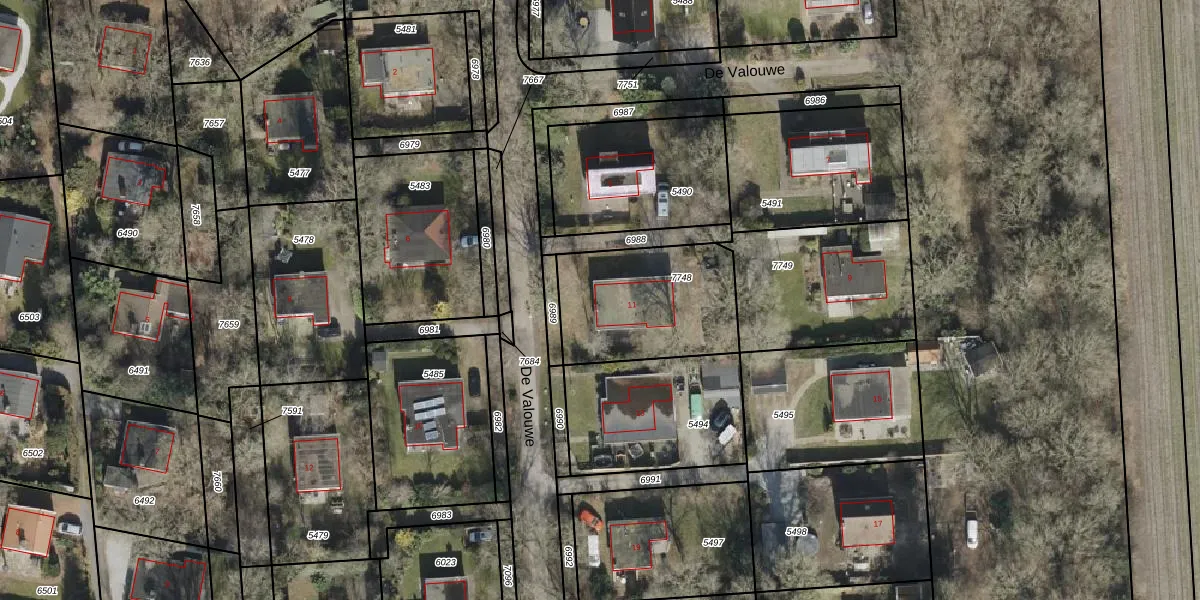 Het perceel waarop De Valouwe 11 staat heeft een oppervlakte van 544 m². Dit is een groot perceel. De perceeloppervlakte wordt geregistreerd door het Kadaster. Gedetailleerde informatie over de maten van dit perceel kunt u vinden in het rapport Kadastrale kaart met maatvoering van De Valouwe 11.