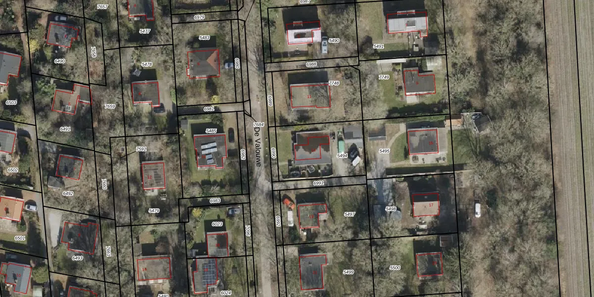 Het perceel waarop De Valouwe 13 staat heeft een oppervlakte van 546 m². Dit is een groot perceel. De perceeloppervlakte wordt geregistreerd door het Kadaster. Gedetailleerde informatie over de maten van dit perceel kunt u vinden in het rapport Kadastrale kaart met maatvoering van De Valouwe 13.