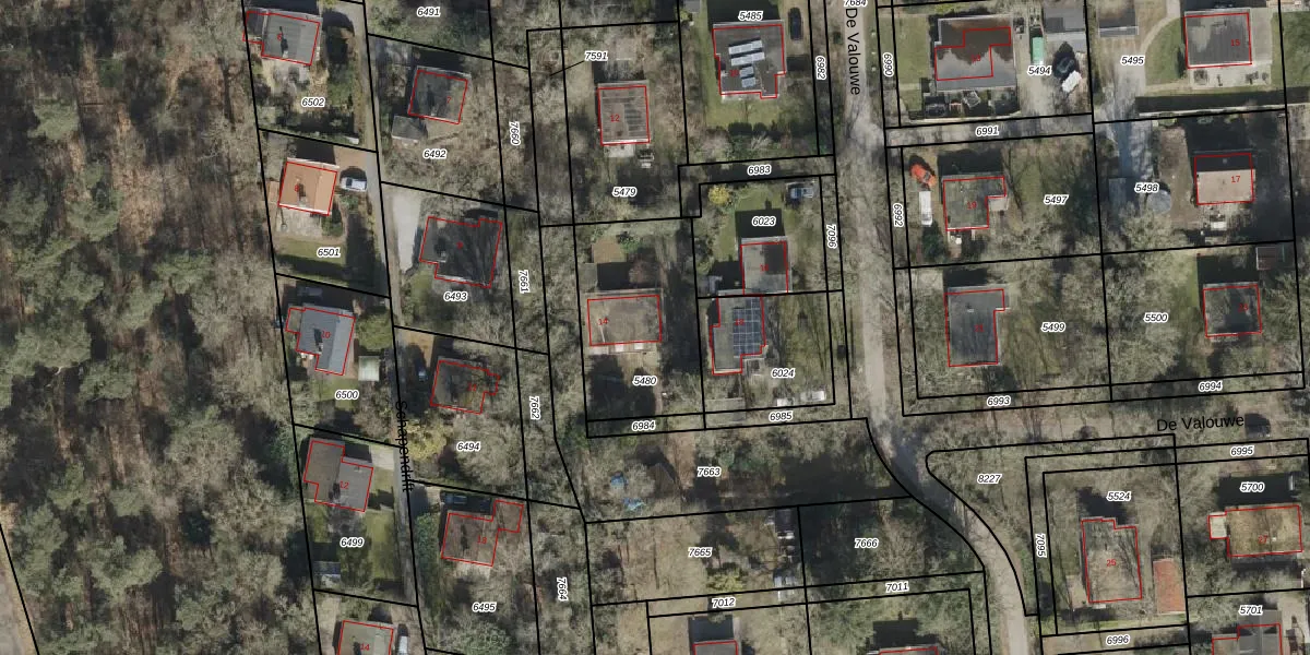 Het perceel waarop De Valouwe 14 staat heeft een oppervlakte van 540 m². Dit is een groot perceel. De perceeloppervlakte wordt geregistreerd door het Kadaster. Gedetailleerde informatie over de maten van dit perceel kunt u vinden in het rapport Kadastrale kaart met maatvoering van De Valouwe 14.
