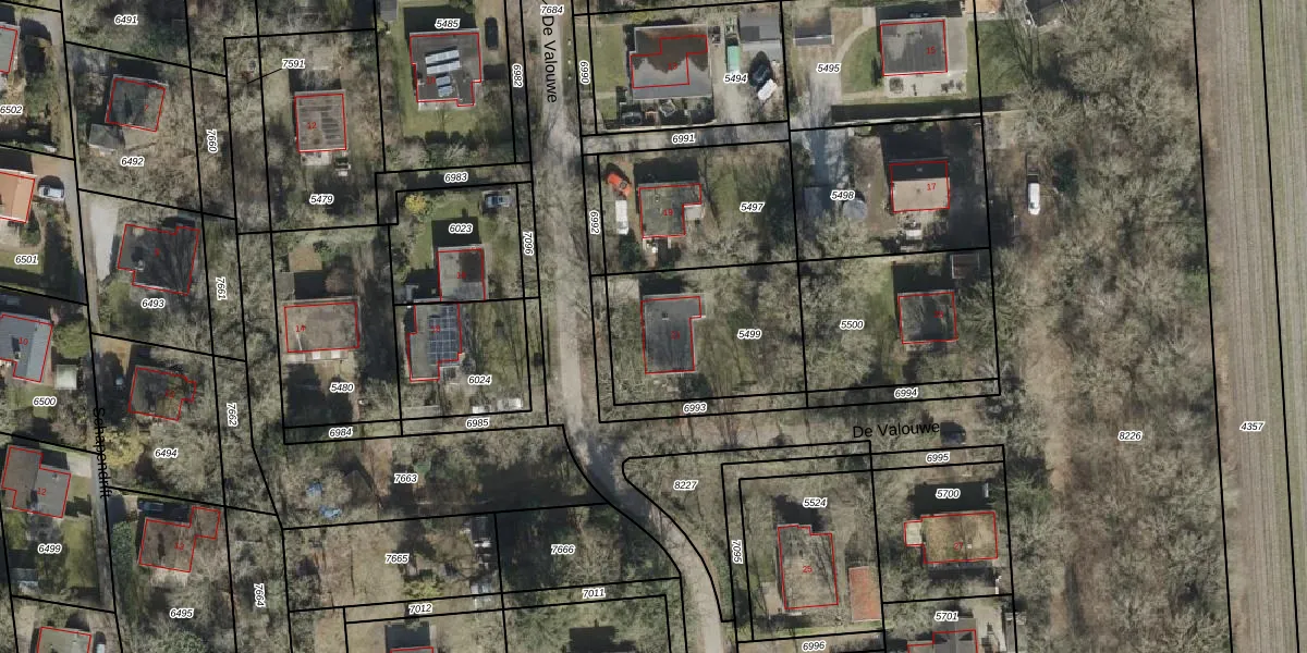 Het perceel waarop De Valouwe 21 staat heeft een oppervlakte van 591 m². Dit is een groot perceel. De perceeloppervlakte wordt geregistreerd door het Kadaster. Gedetailleerde informatie over de maten van dit perceel kunt u vinden in het rapport Kadastrale kaart met maatvoering van De Valouwe 21.