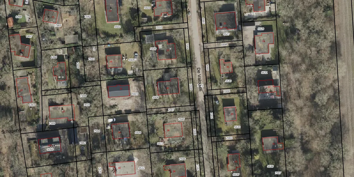 Het perceel waarop De Valouwe 30 staat heeft een oppervlakte van 549 m². Dit is een groot perceel. De perceeloppervlakte wordt geregistreerd door het Kadaster. Gedetailleerde informatie over de maten van dit perceel kunt u vinden in het rapport Kadastrale kaart met maatvoering van De Valouwe 30.