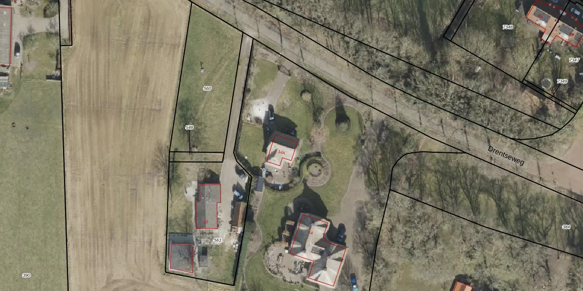 Drentseweg 14-A is gelegen op kadastraal perceel MKG00L562. Deze kadastrale aanduiding is uniek en wordt gebruikt door het Kadaster om eigendomsrechten en andere zakelijke rechten vast te leggen. Het perceel maakt onderdeel uit van de kadastrale gemeente Makkinga.