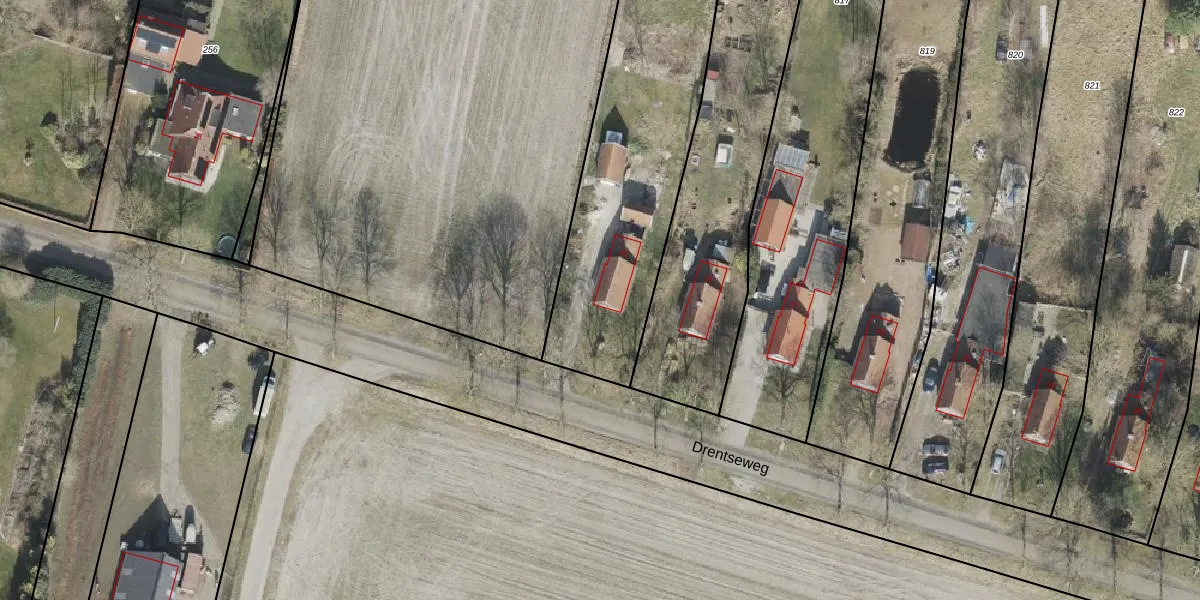 Het perceel waarop Drentseweg 23 staat heeft een oppervlakte van 1910 m². Dit is een zeer groot perceel. De perceeloppervlakte wordt geregistreerd door het Kadaster. Gedetailleerde informatie over de maten van dit perceel kunt u vinden in het rapport Kadastrale kaart met maatvoering van Drentseweg 23.