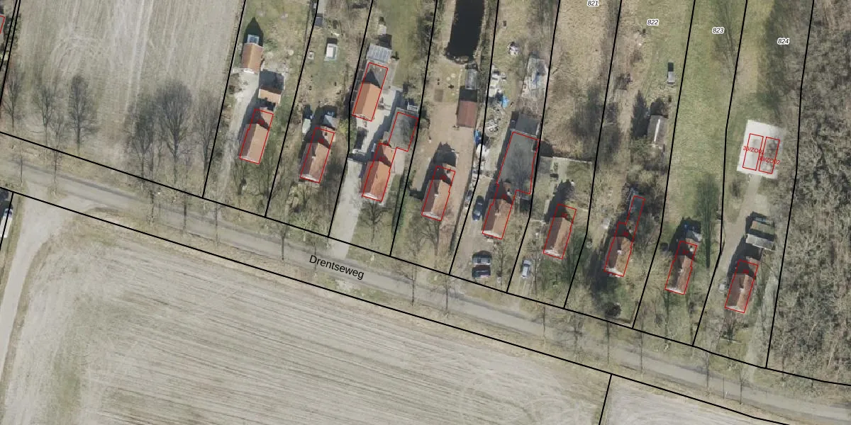 Het perceel waarop Drentseweg 29 staat heeft een oppervlakte van 1850 m². Dit is een zeer groot perceel. De perceeloppervlakte wordt geregistreerd door het Kadaster. Gedetailleerde informatie over de maten van dit perceel kunt u vinden in het rapport Kadastrale kaart met maatvoering van Drentseweg 29.