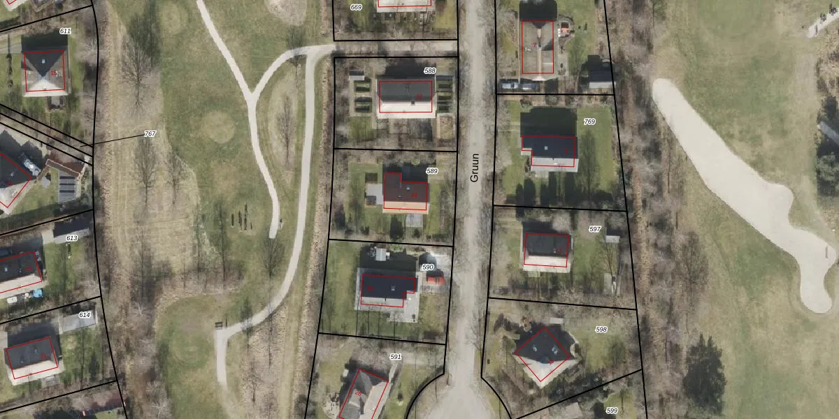 Het perceel waarop Gruun 24 staat heeft een oppervlakte van 657 m². Dit is een groot perceel. De perceeloppervlakte wordt geregistreerd door het Kadaster. Gedetailleerde informatie over de maten van dit perceel kunt u vinden in het rapport Kadastrale kaart met maatvoering van Gruun 24.