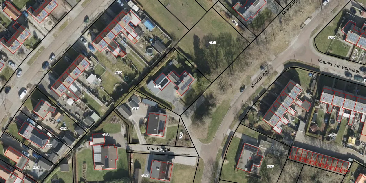 Maadsingel 42 is gelegen op kadastraal perceel MKG00C5362. Deze kadastrale aanduiding is uniek en wordt gebruikt door het Kadaster om eigendomsrechten en andere zakelijke rechten vast te leggen. Het perceel maakt onderdeel uit van de kadastrale gemeente Makkinga.