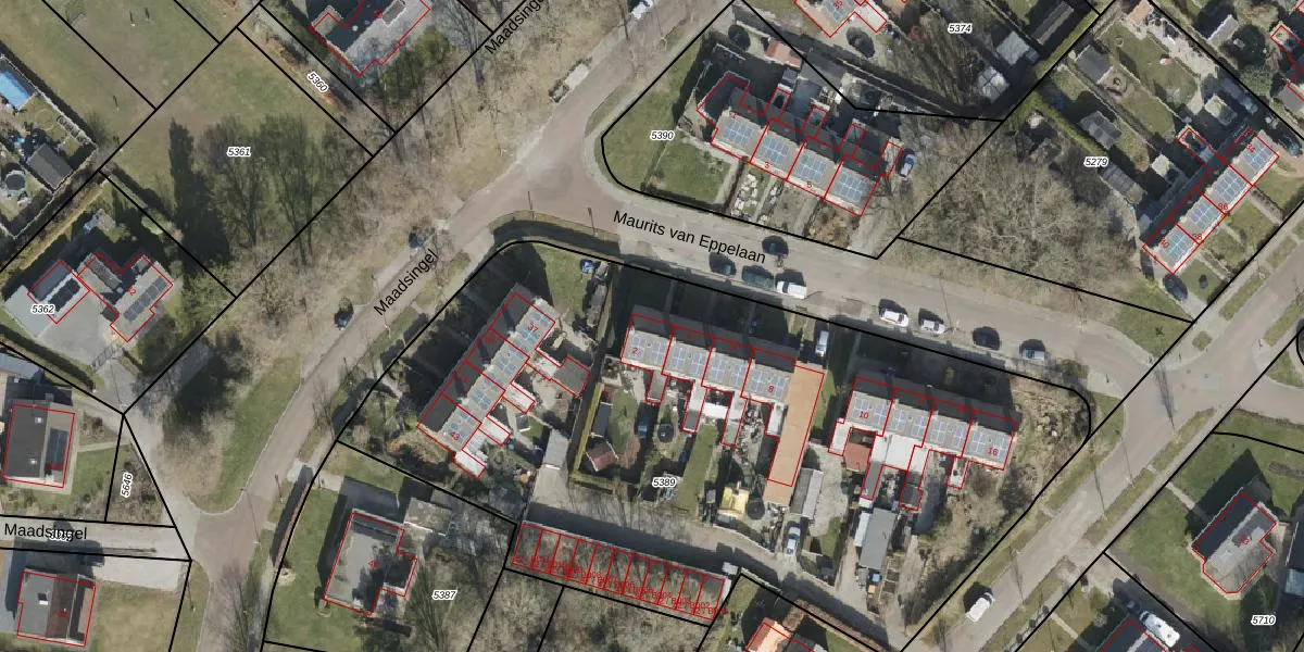 Maurits van Eppelaan 2 is gelegen op kadastraal perceel MKG00C5389. Deze kadastrale aanduiding is uniek en wordt gebruikt door het Kadaster om eigendomsrechten en andere zakelijke rechten vast te leggen. Het perceel maakt onderdeel uit van de kadastrale gemeente Makkinga.