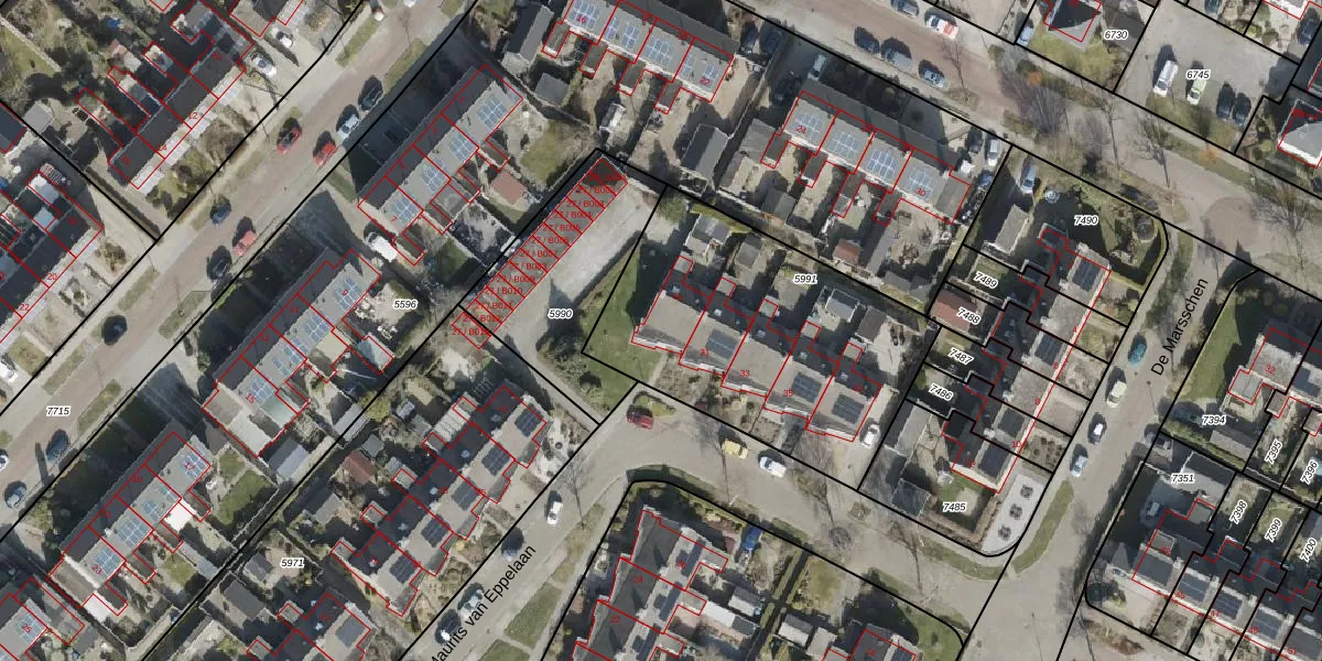 Het perceel waarop Maurits van Eppelaan 29 staat heeft een oppervlakte van 1303 m². Dit is een zeer groot perceel. De perceeloppervlakte wordt geregistreerd door het Kadaster. Gedetailleerde informatie over de maten van dit perceel kunt u vinden in het rapport Kadastrale kaart met maatvoering van Maurits van Eppelaan 29.