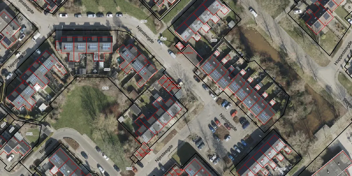 Het perceel waarop Nijesteegde 28-B004 staat heeft een oppervlakte van 3555 m². Dit is een zeer groot perceel. De perceeloppervlakte wordt geregistreerd door het Kadaster. Gedetailleerde informatie over de maten van dit perceel kunt u vinden in het rapport Kadastrale kaart met maatvoering van Nijesteegde 28-B004.