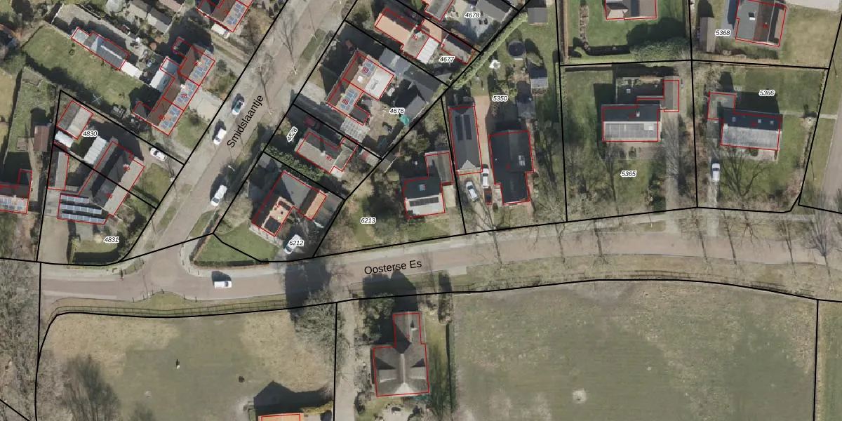 Het perceel waarop Oosterse Es 7 staat heeft een oppervlakte van 685 m². Dit is een groot perceel. De perceeloppervlakte wordt geregistreerd door het Kadaster. Gedetailleerde informatie over de maten van dit perceel kunt u vinden in het rapport Kadastrale kaart met maatvoering van Oosterse Es 7.