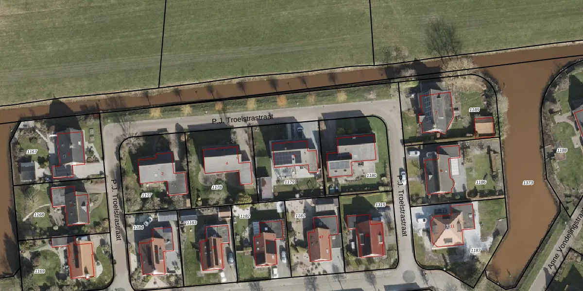 Het perceel waarop P.J. Troelstrastraat 6 staat heeft een oppervlakte van 607 m². Dit is een groot perceel. De perceeloppervlakte wordt geregistreerd door het Kadaster. Gedetailleerde informatie over de maten van dit perceel kunt u vinden in het rapport Kadastrale kaart met maatvoering van P.J. Troelstrastraat 6.