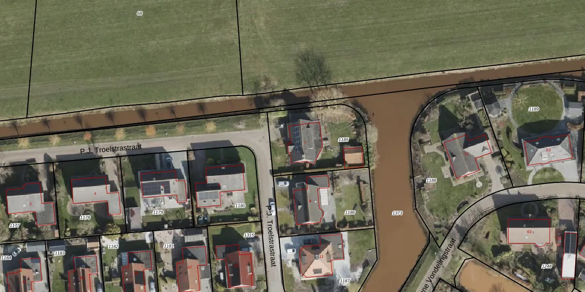 Het perceel waarop P.J. Troelstrastraat 7 staat heeft een oppervlakte van 717 m². Dit is een groot perceel. De perceeloppervlakte wordt geregistreerd door het Kadaster. Gedetailleerde informatie over de maten van dit perceel kunt u vinden in het rapport Kadastrale kaart met maatvoering van P.J. Troelstrastraat 7.