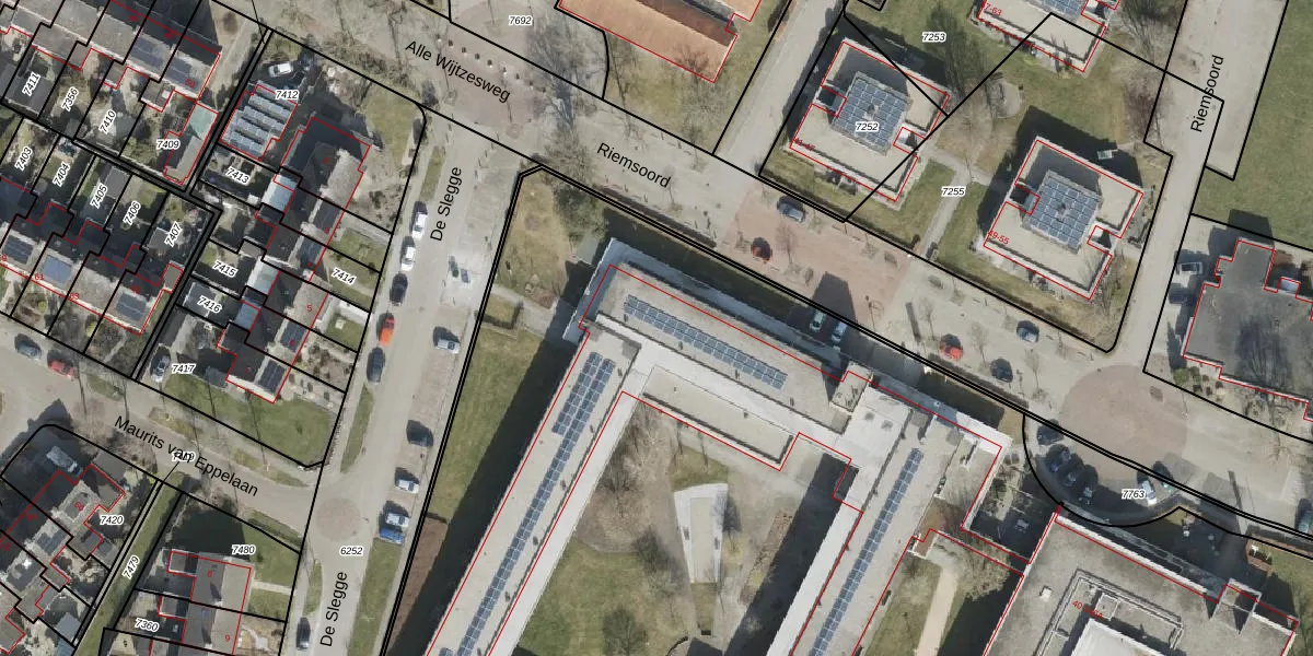 Het perceel waarop Riemsoord 104 staat heeft een oppervlakte van 1,6 ha. Dit is een zeer groot perceel. De perceeloppervlakte wordt geregistreerd door het Kadaster. Gedetailleerde informatie over de maten van dit perceel kunt u vinden in het rapport Kadastrale kaart met maatvoering van Riemsoord 104.
