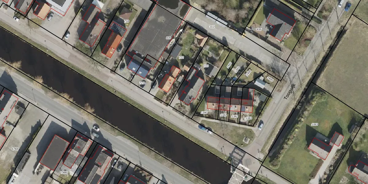 Gebruik de zoekbalk of klik op een perceel voor informatie over de adressen binnen dit perceel.