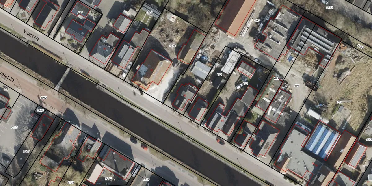 Het perceel waarop Vaart Nz 83 staat heeft een oppervlakte van 2080 m². Dit is een zeer groot perceel. De perceeloppervlakte wordt geregistreerd door het Kadaster. Gedetailleerde informatie over de maten van dit perceel kunt u vinden in het rapport Kadastrale kaart met maatvoering van Vaart Nz 83.