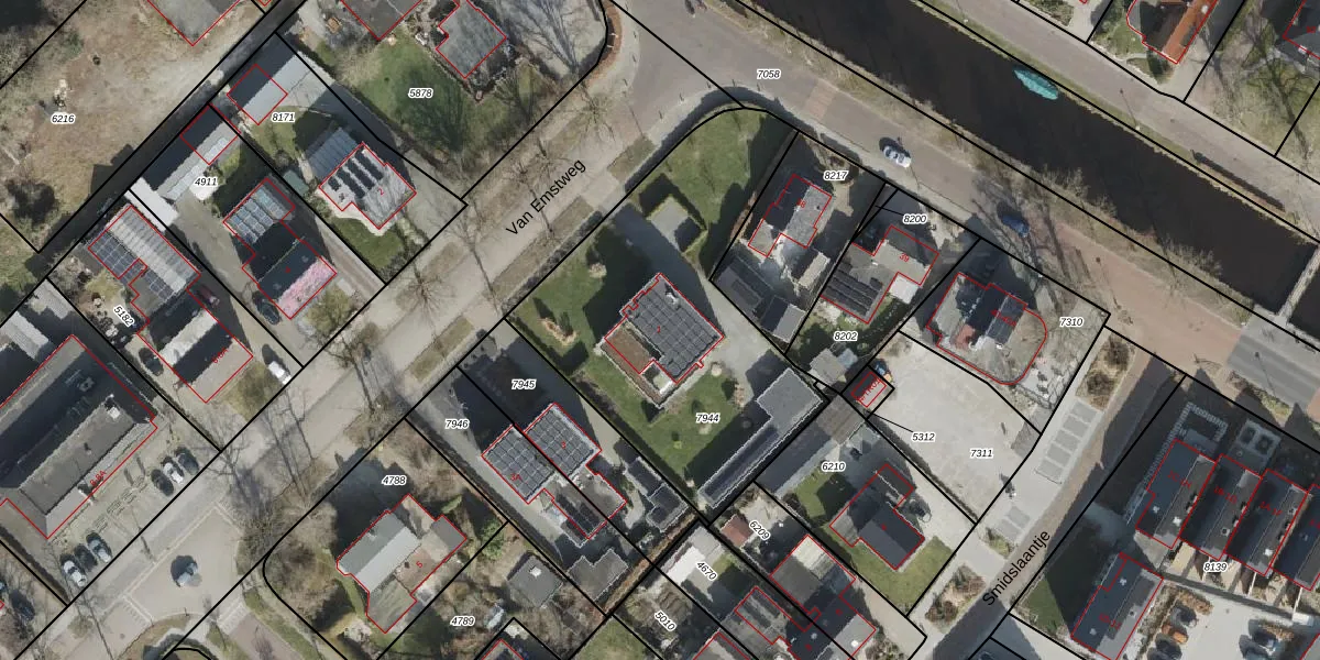 Van Emstweg 1 is gelegen op kadastraal perceel MKG00C7944. Deze kadastrale aanduiding is uniek en wordt gebruikt door het Kadaster om eigendomsrechten en andere zakelijke rechten vast te leggen. Het perceel maakt onderdeel uit van de kadastrale gemeente Makkinga.