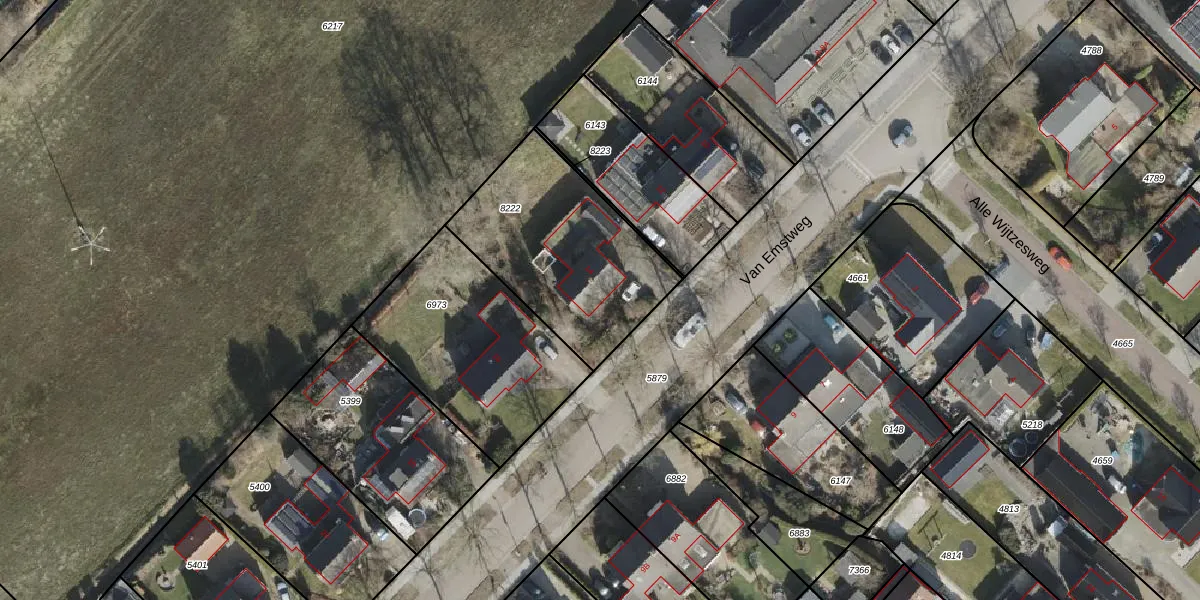 Van Emstweg 14 is gelegen op kadastraal perceel MKG00C8222. Deze kadastrale aanduiding is uniek en wordt gebruikt door het Kadaster om eigendomsrechten en andere zakelijke rechten vast te leggen. Het perceel maakt onderdeel uit van de kadastrale gemeente Makkinga.