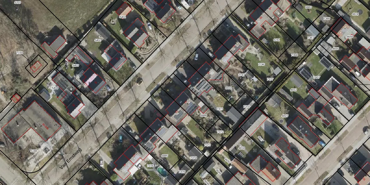 Het perceel waarop Van Emstweg 19 staat heeft een oppervlakte van 350 m². Dit is een groot perceel. De perceeloppervlakte wordt geregistreerd door het Kadaster. Gedetailleerde informatie over de maten van dit perceel kunt u vinden in het rapport Kadastrale kaart met maatvoering van Van Emstweg 19.