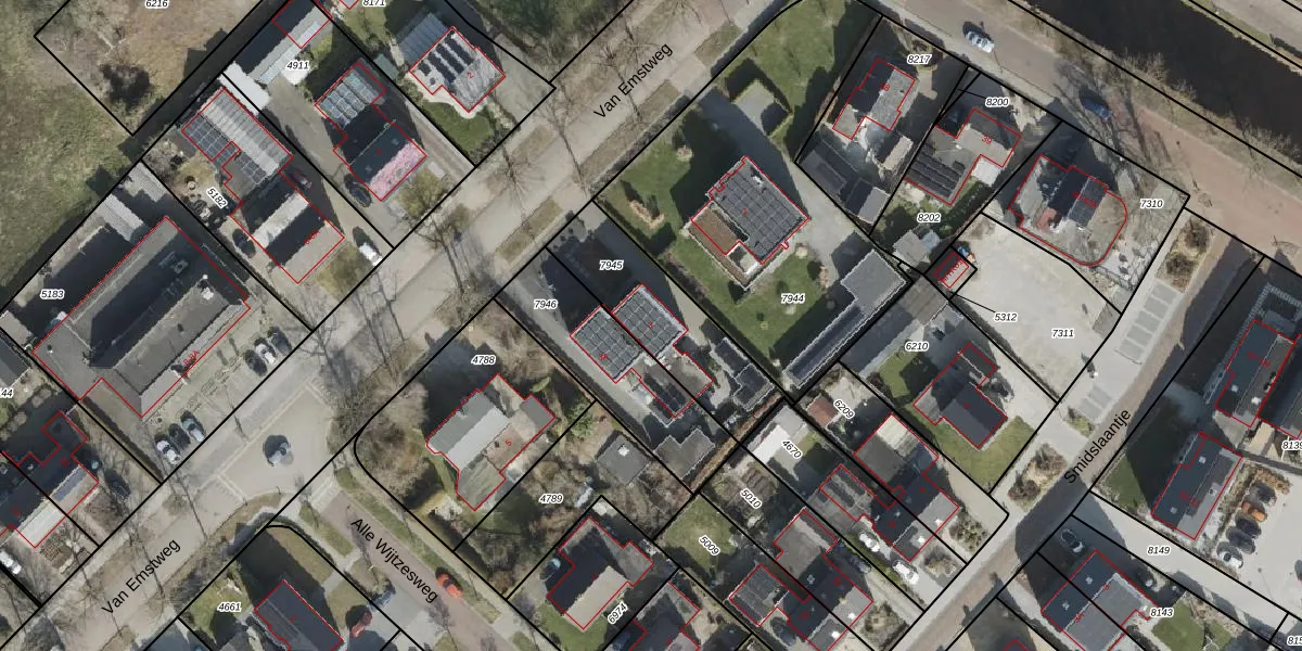 Gebruik de zoekbalk of klik op een perceel voor informatie over de adressen binnen dit perceel.