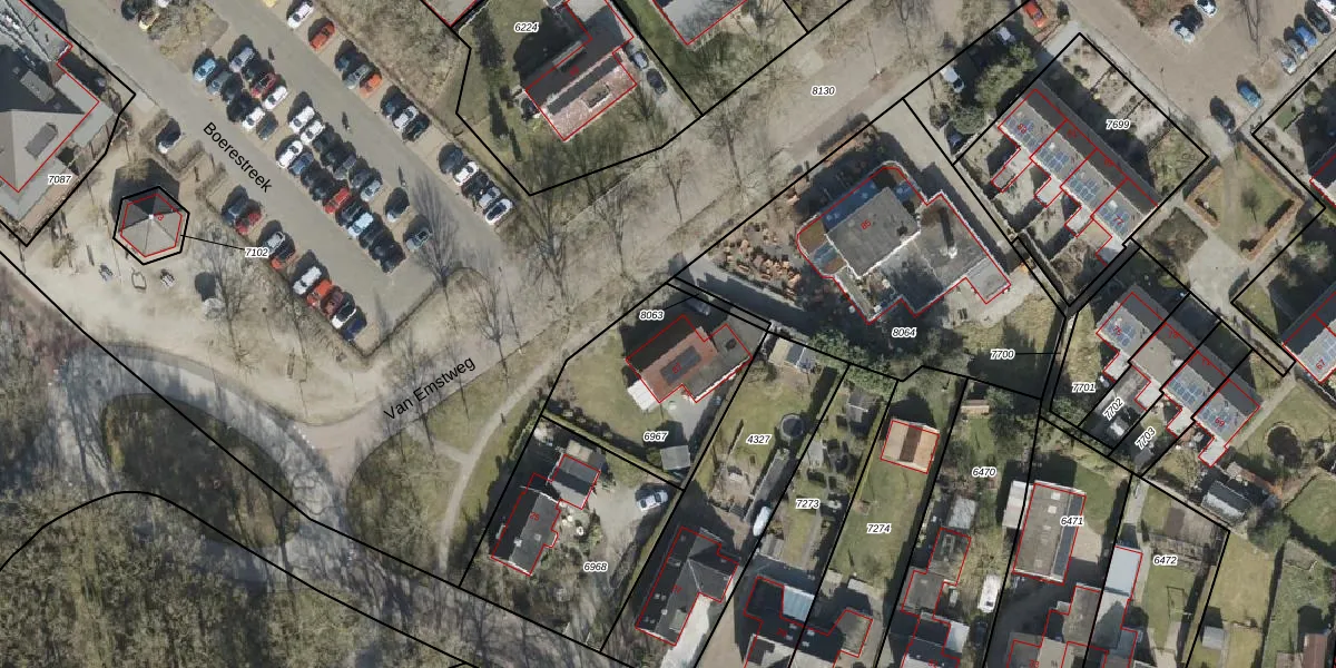 Gebruik de zoekbalk of klik op een perceel voor informatie over de adressen binnen dit perceel.