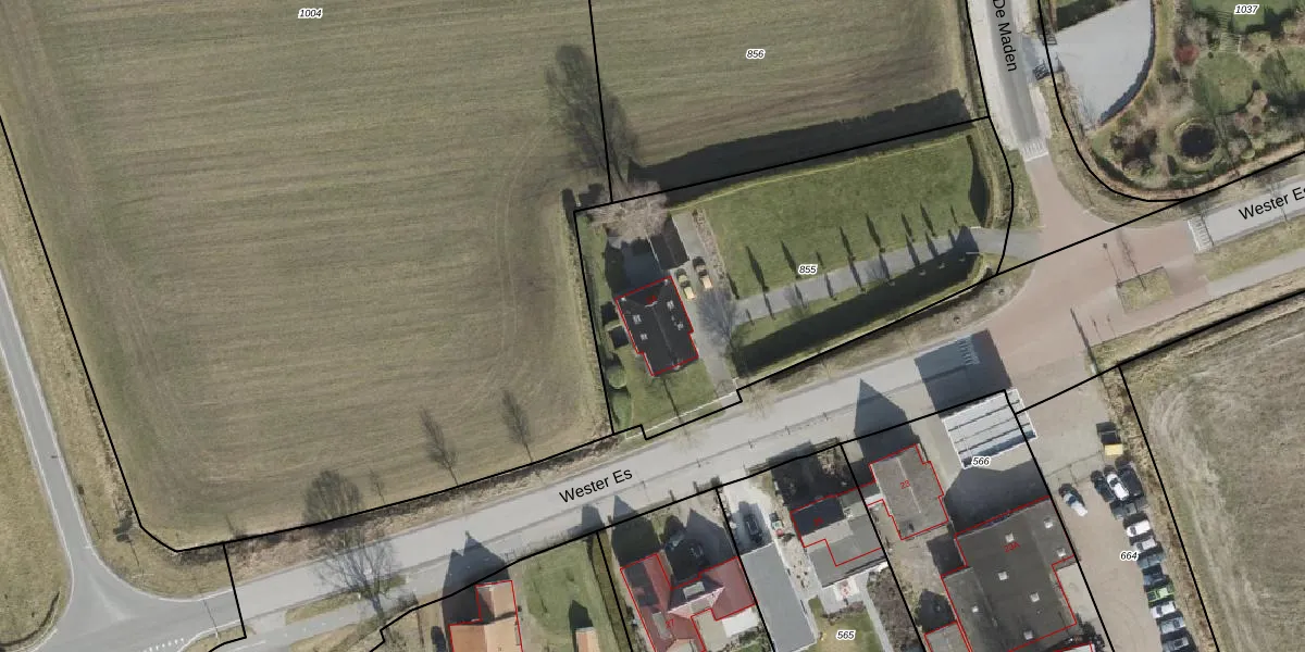 Het perceel waarop Wester Es 54 staat heeft een oppervlakte van 1980 m². Dit is een zeer groot perceel. De perceeloppervlakte wordt geregistreerd door het Kadaster. Gedetailleerde informatie over de maten van dit perceel kunt u vinden in het rapport Kadastrale kaart met maatvoering van Wester Es 54.