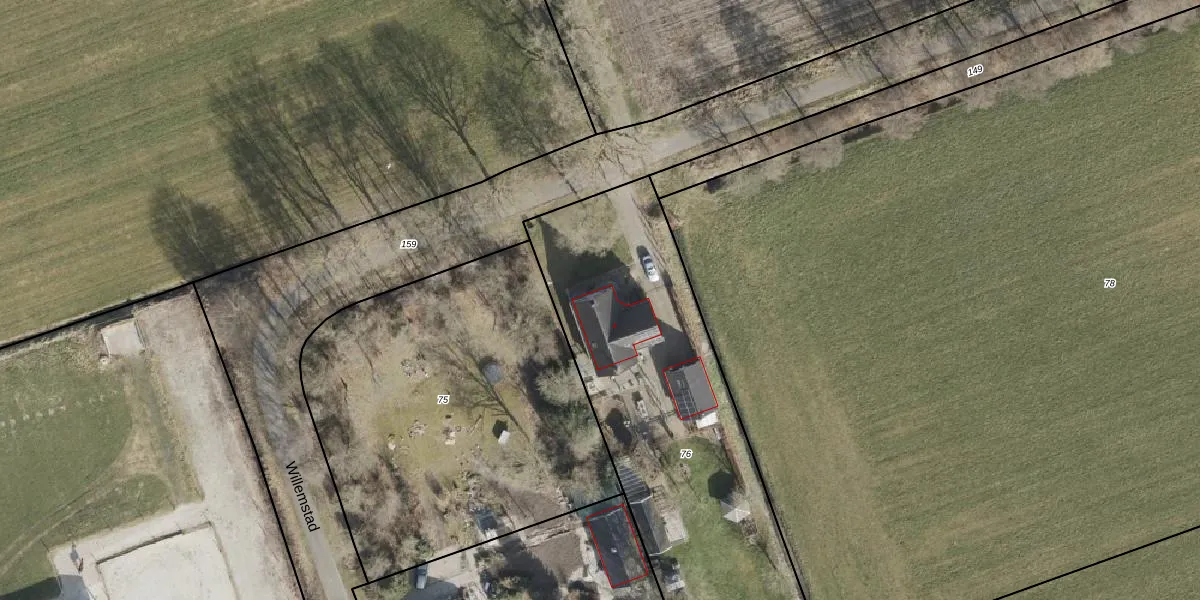 Het perceel waarop Willemstad 4 staat heeft een oppervlakte van 1880 m². Dit is een zeer groot perceel. De perceeloppervlakte wordt geregistreerd door het Kadaster. Gedetailleerde informatie over de maten van dit perceel kunt u vinden in het rapport Kadastrale kaart met maatvoering van Willemstad 4.
