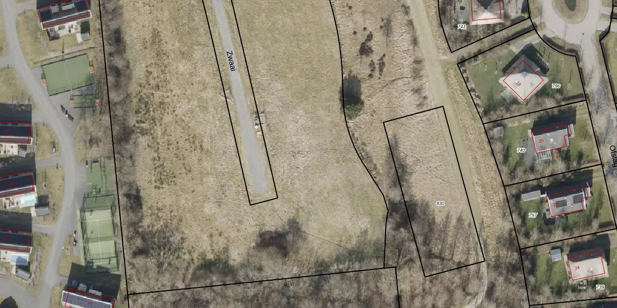 Het perceel waarop Zwaai 25 staat heeft een oppervlakte van 1,2 ha. Dit is een zeer groot perceel. De perceeloppervlakte wordt geregistreerd door het Kadaster. Gedetailleerde informatie over de maten van dit perceel kunt u vinden in het rapport Kadastrale kaart met maatvoering van Zwaai 25.