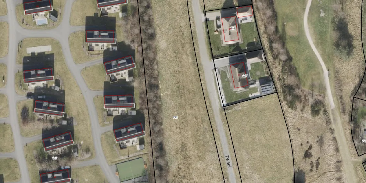 Het perceel waarop Zwaai 32 staat heeft een oppervlakte van 1,2 ha. Dit is een zeer groot perceel. De perceeloppervlakte wordt geregistreerd door het Kadaster. Gedetailleerde informatie over de maten van dit perceel kunt u vinden in het rapport Kadastrale kaart met maatvoering van Zwaai 32.