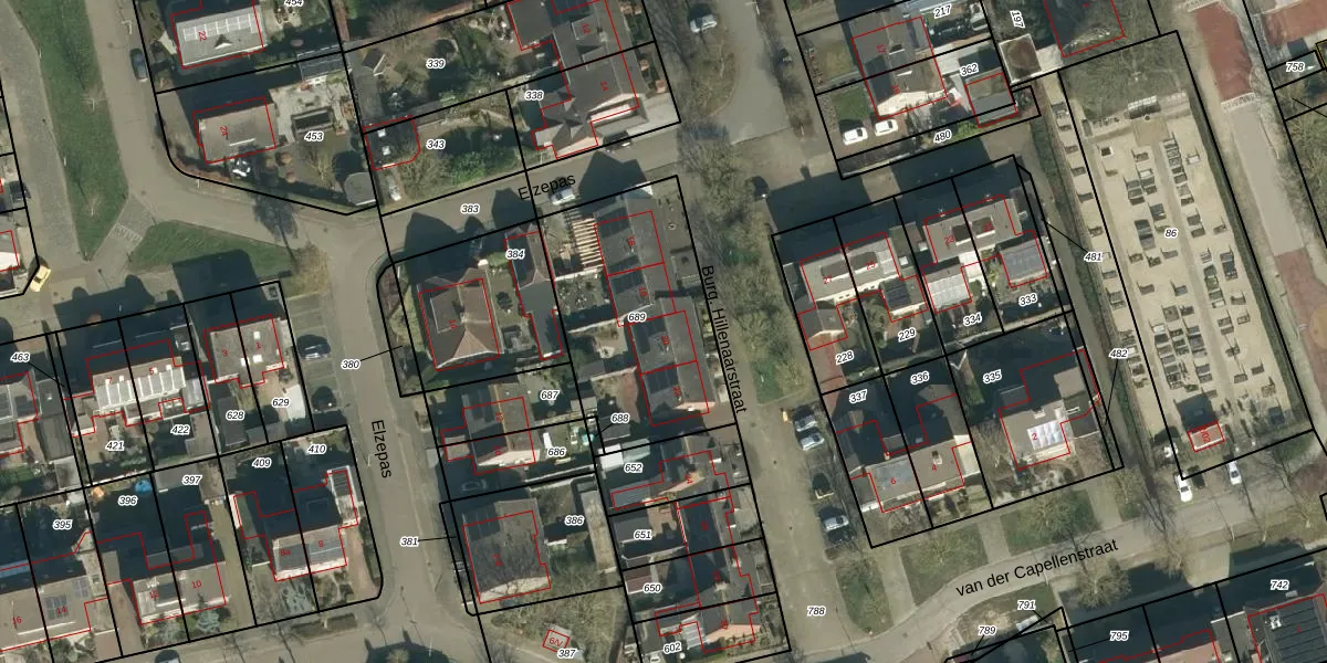 Het perceel waarop Burg. Hillenaarstraat 20 staat heeft een oppervlakte van 771 m². Dit is een groot perceel. De perceeloppervlakte wordt geregistreerd door het Kadaster. Gedetailleerde informatie over de maten van dit perceel kunt u vinden in het rapport Kadastrale kaart met maatvoering van Burg. Hillenaarstraat 20.