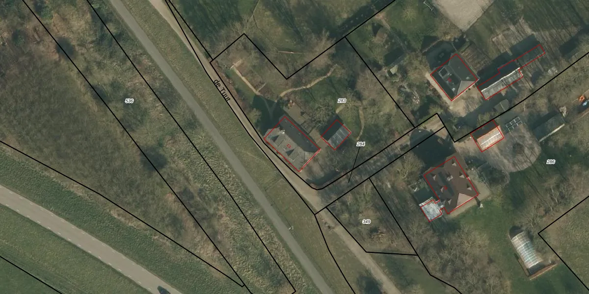 Het perceel waarop de Tuut 13 staat heeft een oppervlakte van 1960 m². Dit is een zeer groot perceel. De perceeloppervlakte wordt geregistreerd door het Kadaster. Gedetailleerde informatie over de maten van dit perceel kunt u vinden in het rapport Kadastrale kaart met maatvoering van de Tuut 13.
