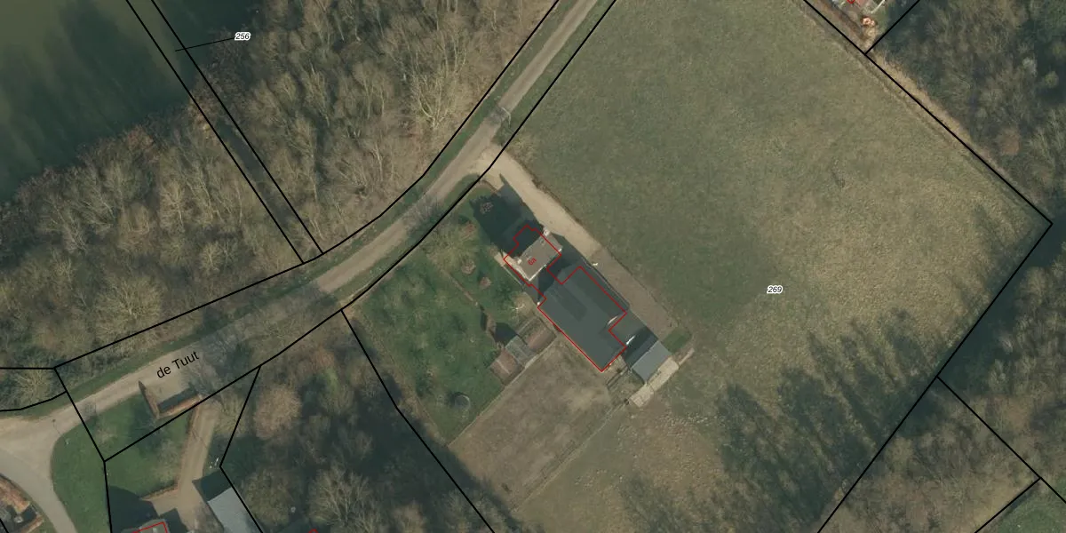Het perceel waarop de Tuut 6-a staat heeft een oppervlakte van 1,1 ha. Dit is een zeer groot perceel. De perceeloppervlakte wordt geregistreerd door het Kadaster. Gedetailleerde informatie over de maten van dit perceel kunt u vinden in het rapport Kadastrale kaart met maatvoering van de Tuut 6-a.