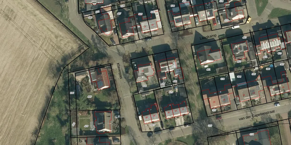 Gebruik de zoekbalk of klik op een perceel voor informatie over de adressen binnen dit perceel.