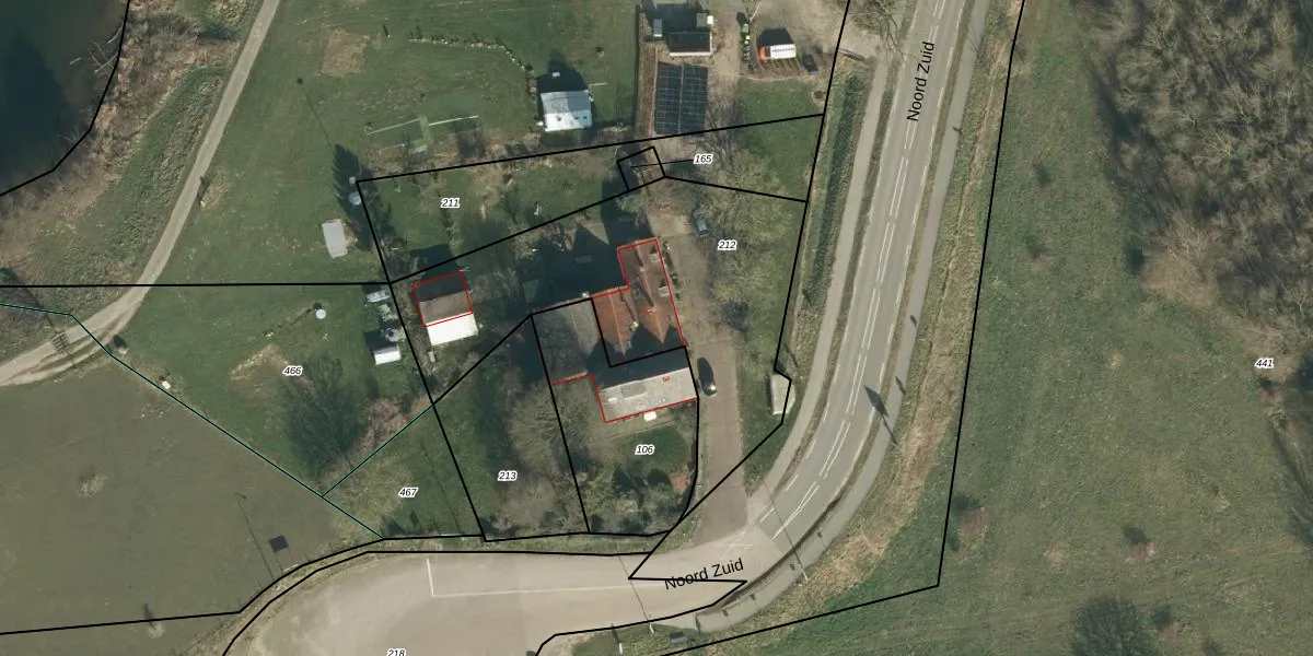 Noord Zuid 1 is gelegen op kadastraal perceel APT00P212. Deze kadastrale aanduiding is uniek en wordt gebruikt door het Kadaster om eigendomsrechten en andere zakelijke rechten vast te leggen. Het perceel maakt onderdeel uit van de kadastrale gemeente Appeltern.