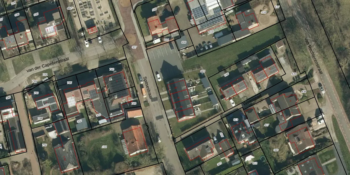 Het perceel waarop Spitsestraat 4-d staat heeft een oppervlakte van 2028 m². Dit is een zeer groot perceel. De perceeloppervlakte wordt geregistreerd door het Kadaster. Gedetailleerde informatie over de maten van dit perceel kunt u vinden in het rapport Kadastrale kaart met maatvoering van Spitsestraat 4-d.