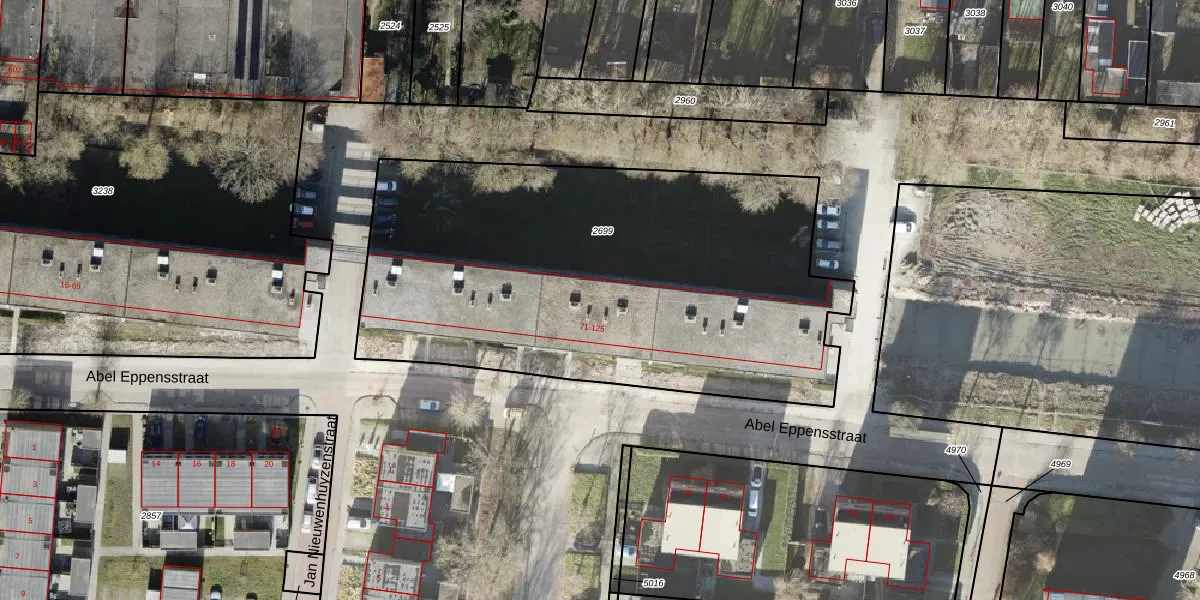 Het perceel waarop Abel Eppensstraat 105 staat heeft een oppervlakte van 2720 m². Dit is een zeer groot perceel. De perceeloppervlakte wordt geregistreerd door het Kadaster. Gedetailleerde informatie over de maten van dit perceel kunt u vinden in het rapport Kadastrale kaart met maatvoering van Abel Eppensstraat 105.