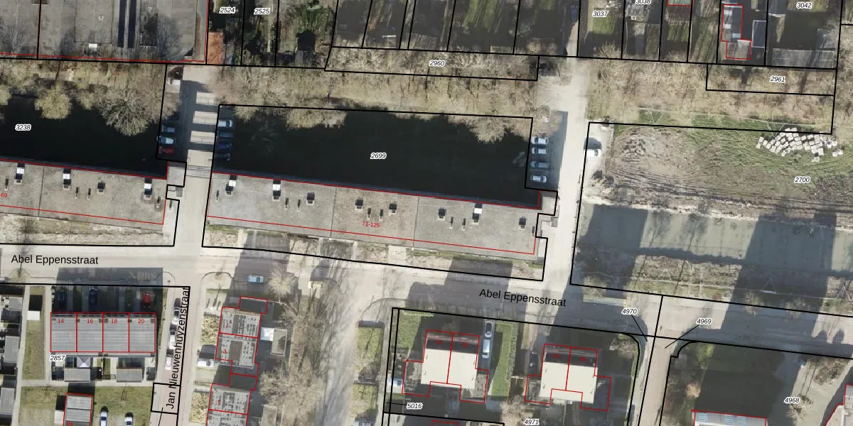 Abel Eppensstraat 107 is gelegen op kadastraal perceel APG00G2699. Deze kadastrale aanduiding is uniek en wordt gebruikt door het Kadaster om eigendomsrechten en andere zakelijke rechten vast te leggen. Het perceel maakt onderdeel uit van de kadastrale gemeente Appingedam.