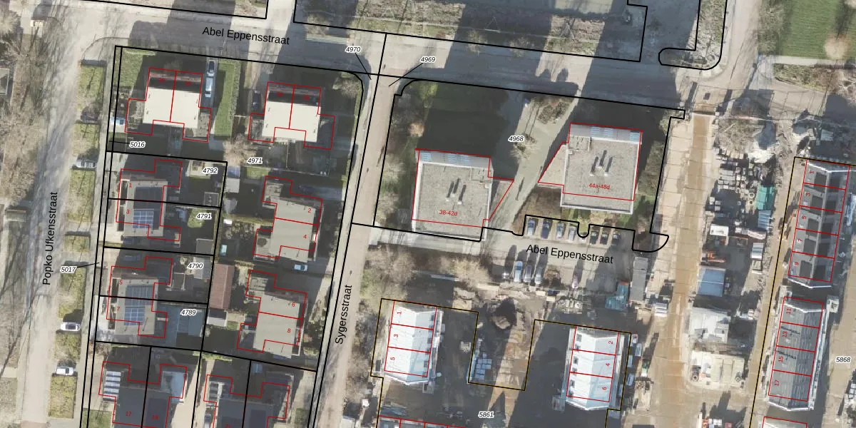 Het perceel waarop Abel Eppensstraat 40-a staat heeft een oppervlakte van 2120 m². Dit is een zeer groot perceel. De perceeloppervlakte wordt geregistreerd door het Kadaster. Gedetailleerde informatie over de maten van dit perceel kunt u vinden in het rapport Kadastrale kaart met maatvoering van Abel Eppensstraat 40-a.