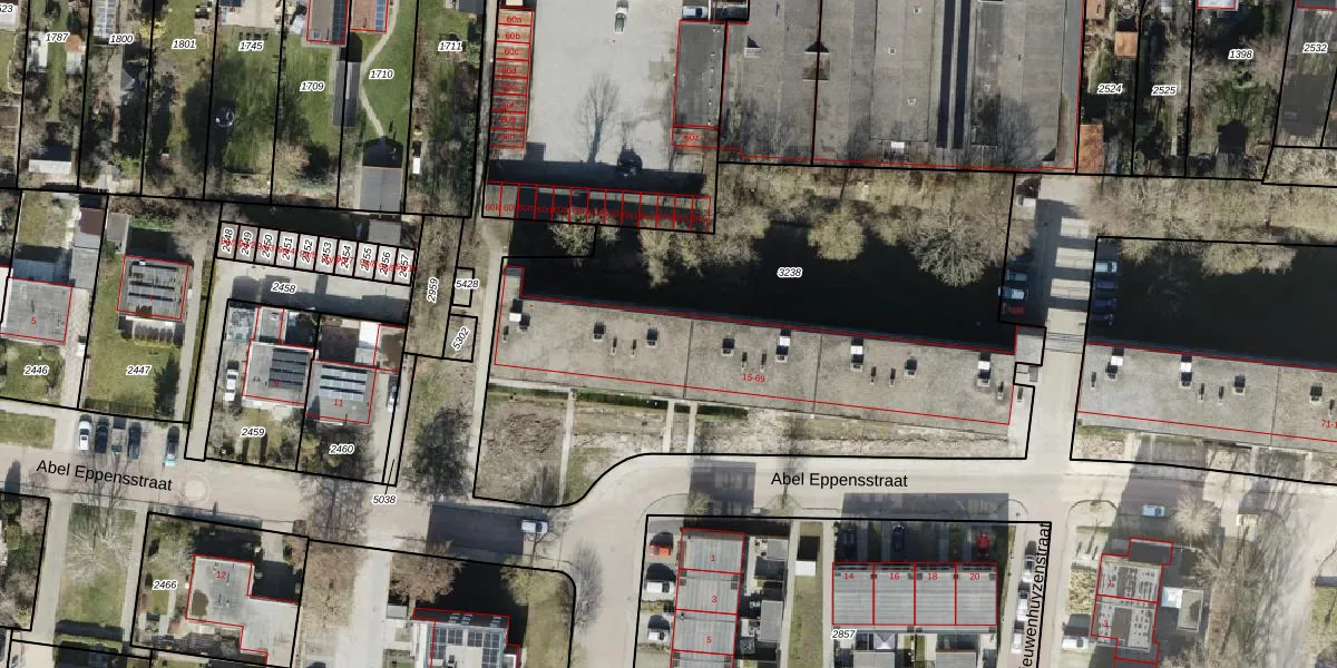 Het perceel waarop Abel Eppensstraat 47 staat heeft een oppervlakte van 3162 m². Dit is een zeer groot perceel. De perceeloppervlakte wordt geregistreerd door het Kadaster. Gedetailleerde informatie over de maten van dit perceel kunt u vinden in het rapport Kadastrale kaart met maatvoering van Abel Eppensstraat 47.