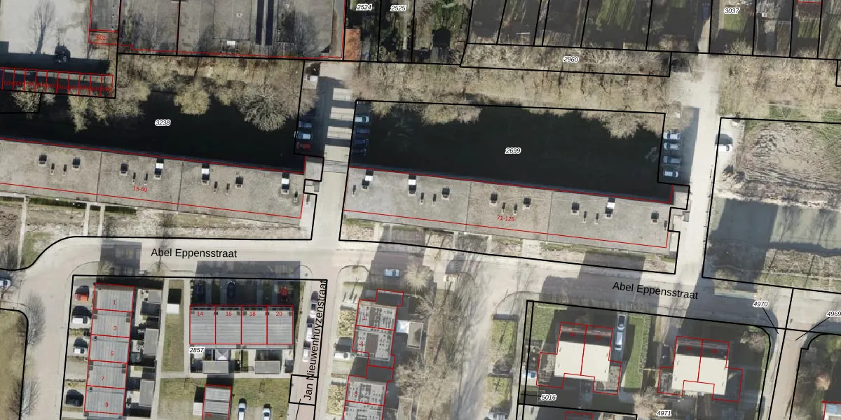 Het perceel waarop Abel Eppensstraat 73 staat heeft een oppervlakte van 2720 m². Dit is een zeer groot perceel. De perceeloppervlakte wordt geregistreerd door het Kadaster. Gedetailleerde informatie over de maten van dit perceel kunt u vinden in het rapport Kadastrale kaart met maatvoering van Abel Eppensstraat 73.