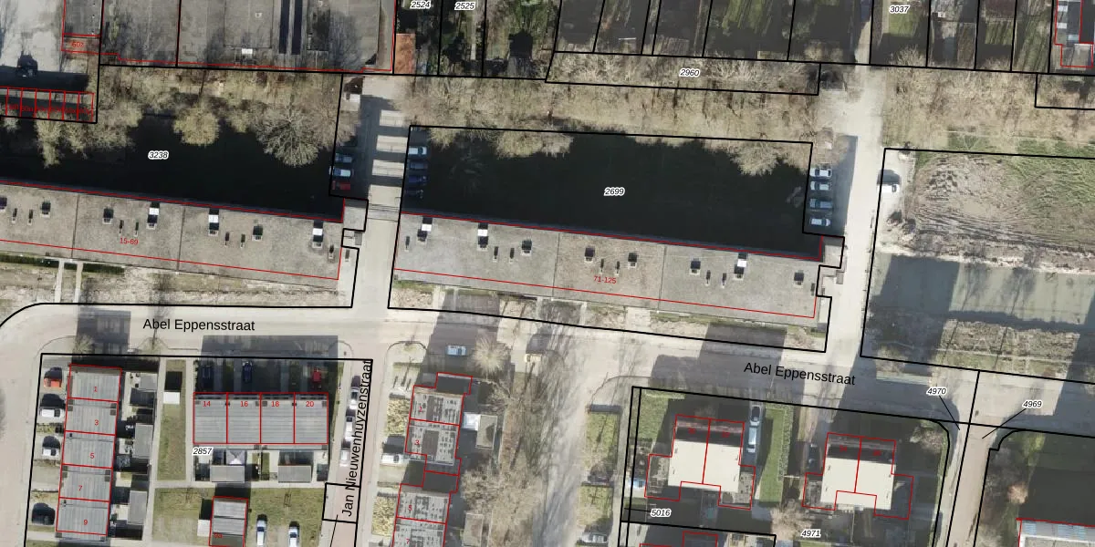 Het perceel waarop Abel Eppensstraat 75 staat heeft een oppervlakte van 2720 m². Dit is een zeer groot perceel. De perceeloppervlakte wordt geregistreerd door het Kadaster. Gedetailleerde informatie over de maten van dit perceel kunt u vinden in het rapport Kadastrale kaart met maatvoering van Abel Eppensstraat 75.