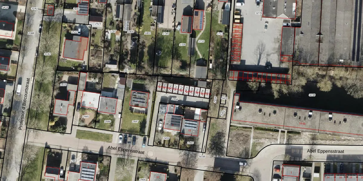 Gebruik de zoekbalk of klik op een perceel voor informatie over de adressen binnen dit perceel.