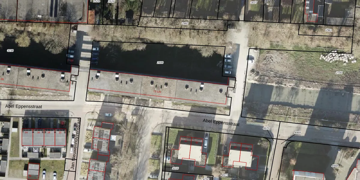 Het perceel waarop Abel Eppensstraat 93 staat heeft een oppervlakte van 2720 m². Dit is een zeer groot perceel. De perceeloppervlakte wordt geregistreerd door het Kadaster. Gedetailleerde informatie over de maten van dit perceel kunt u vinden in het rapport Kadastrale kaart met maatvoering van Abel Eppensstraat 93.