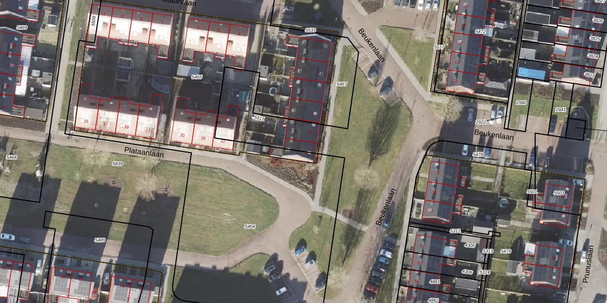 Het perceel waarop Beukenlaan 12 staat heeft een oppervlakte van 503 m². Dit is een groot perceel. De perceeloppervlakte wordt geregistreerd door het Kadaster. Gedetailleerde informatie over de maten van dit perceel kunt u vinden in het rapport Kadastrale kaart met maatvoering van Beukenlaan 12.