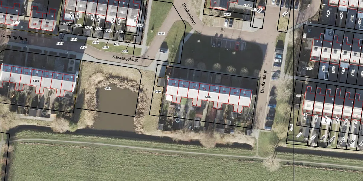 Beukenlaan 52 is gelegen op kadastraal perceel APG00G5487. Deze kadastrale aanduiding is uniek en wordt gebruikt door het Kadaster om eigendomsrechten en andere zakelijke rechten vast te leggen. Het perceel maakt onderdeel uit van de kadastrale gemeente Appingedam.