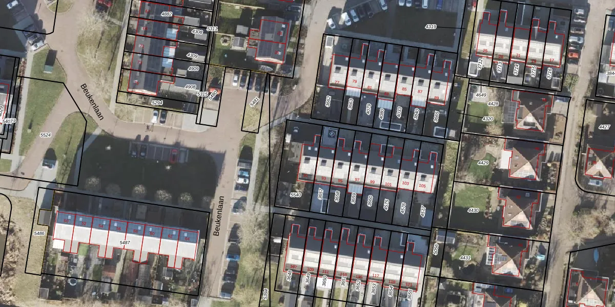 Beukenlaan 91 is gelegen op kadastraal perceel APG00G5540. Deze kadastrale aanduiding is uniek en wordt gebruikt door het Kadaster om eigendomsrechten en andere zakelijke rechten vast te leggen. Het perceel maakt onderdeel uit van de kadastrale gemeente Appingedam.